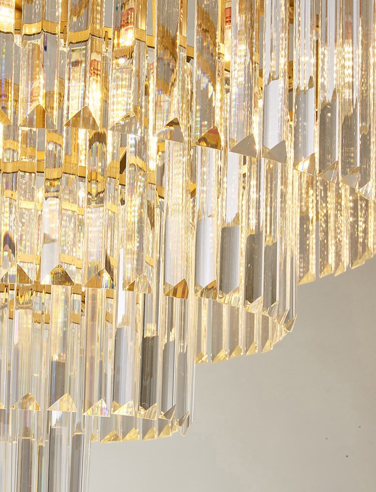 Đèn Chùm Pha Lê Phong Cách Bắc Âu Viền Kim Loại DC216F này được điểm cộng tuyệt đối trong mắt khách hàng đó là sự độc đáo trong thiết kế. 4 tầng đèn được liên kết với nhau tạo thành tổng thể đẹp mắt. 4 tầng có kích thước nhỏ dần từ trên xuống dưới tạo điểm nhấn hút mắt đặc biệt.