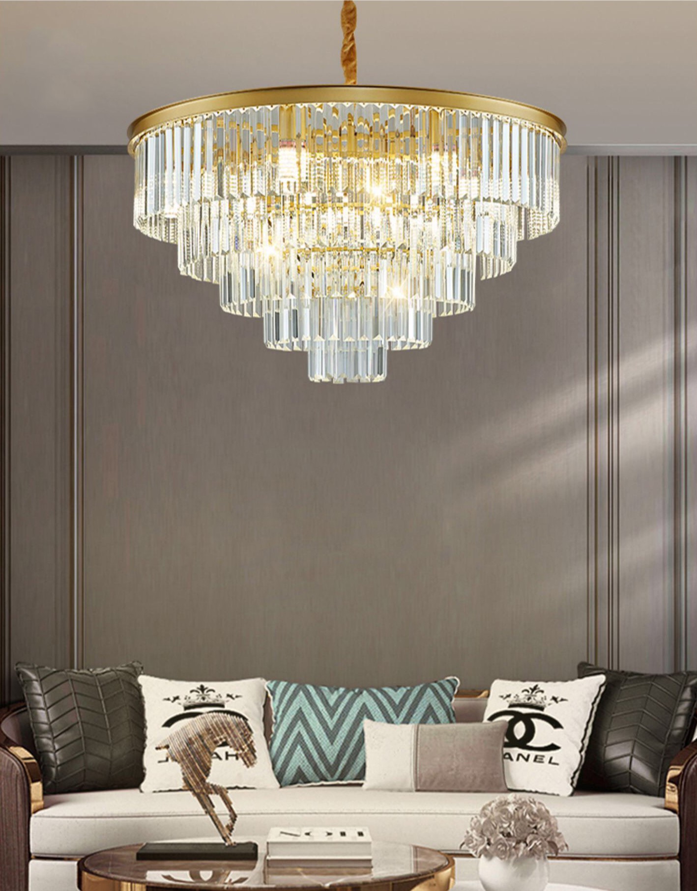 Mục đích sử dụng: Đèn chùm trang trí phòng khách, phòng ngủ, phòng ăn, nhà hàng, khách sạn, hội trường, biệt thự...