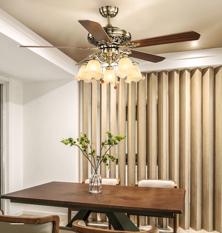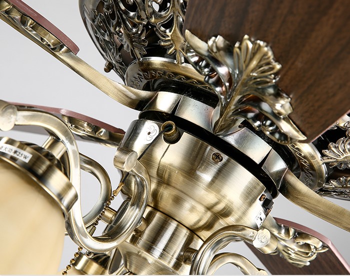 Một không gian đẹp chắc chắn một phần sẽ do việc lựa chọn sản phẩm trang trí nội thất đẹp. Và mẫu Đèn Quạt Trần mang kiểu dáng Tân Cổ Điển này không chỉ tiện lợi mà còn giúp bạn có một không gian nội thất đẹp mắt, sang trọng hơn. Nhờ thiết kế màu sắc sang trọng giữa màu nâu cánh gỗ và màu đồng của bộ máy, các chi tiết hoa văn chạm khắc trên tay và máy cũng cực tinh tế và tỉ mỉ.
