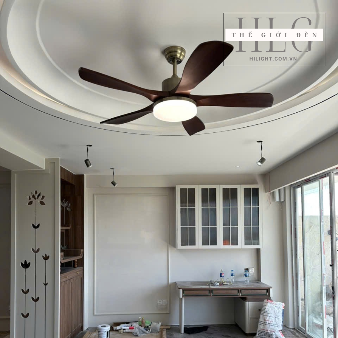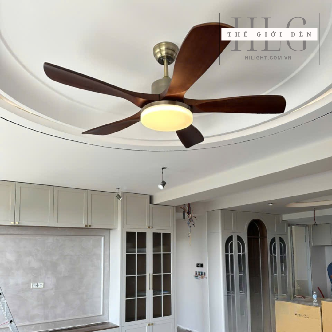 Mẫu quạt trần cánh gỗ rất phù hợp không gian phòng khách, nhà hàng, phòng sinh hoạt chung sang trọng lịch sự
